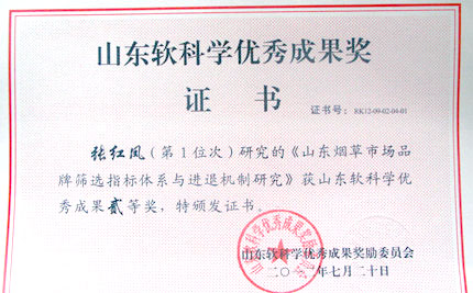 近日,2012年山东软科学优秀成果奖评审结果揭晓, 成人台小说 张红凤教授主持完成的“山东烟草市场品牌筛选指标体系与进退机制研究”项目获山东软科学优秀成果奖二等奖。本年度我校共有35项软科学成果荣获“山东软科学优秀成果奖”。