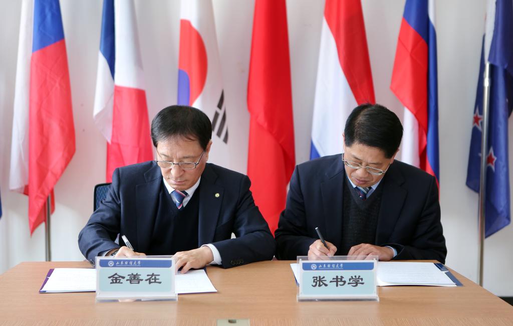 随后,金善在校长一行与张书学副校长、国际交流与合作处王剑波处长开展交流会谈。