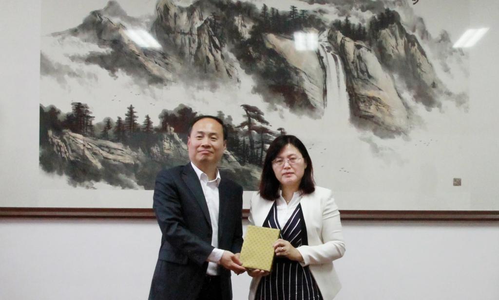 会谈结束后,张红凤院长与赵源一主任互赠礼品并合影留念。