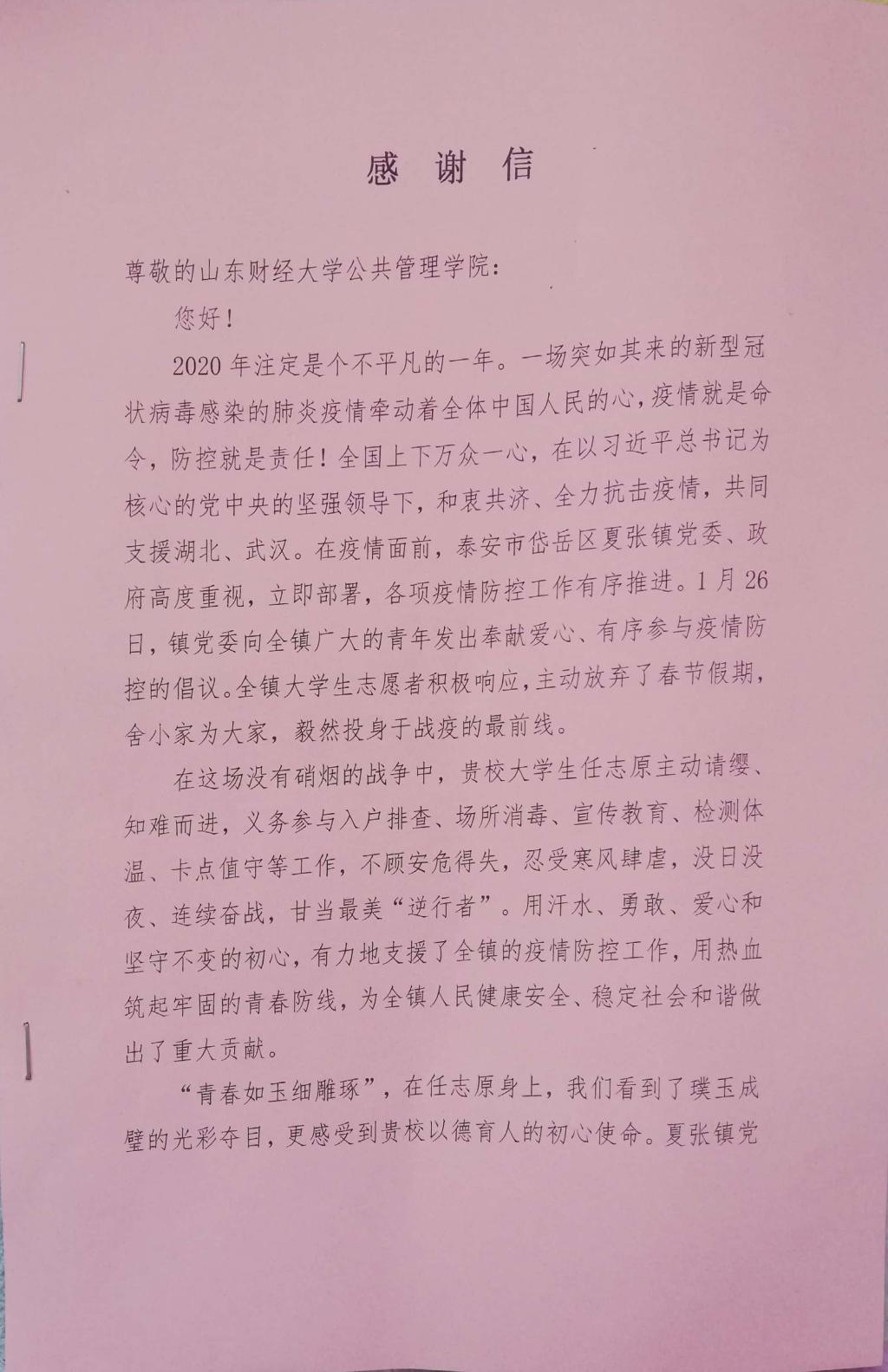 任志原身为夏北防疫志愿服务队的队长,他身先士卒,为其他队员做出榜样,并且积极完成身为队长的工作,主持安排每日疫情防治工作任务的安排和各种通知的下达,让防疫期间的各项工作有序进行。防疫期间,他又领导全体大学生志愿者拍摄抗议宣传视频,并取得优秀成绩,又带领志愿者慰问夏张北村贫困户和环卫工人,引起积极的社会反响,让夏北大学生志愿者成为夏北防疫站点一份别样的风景线。