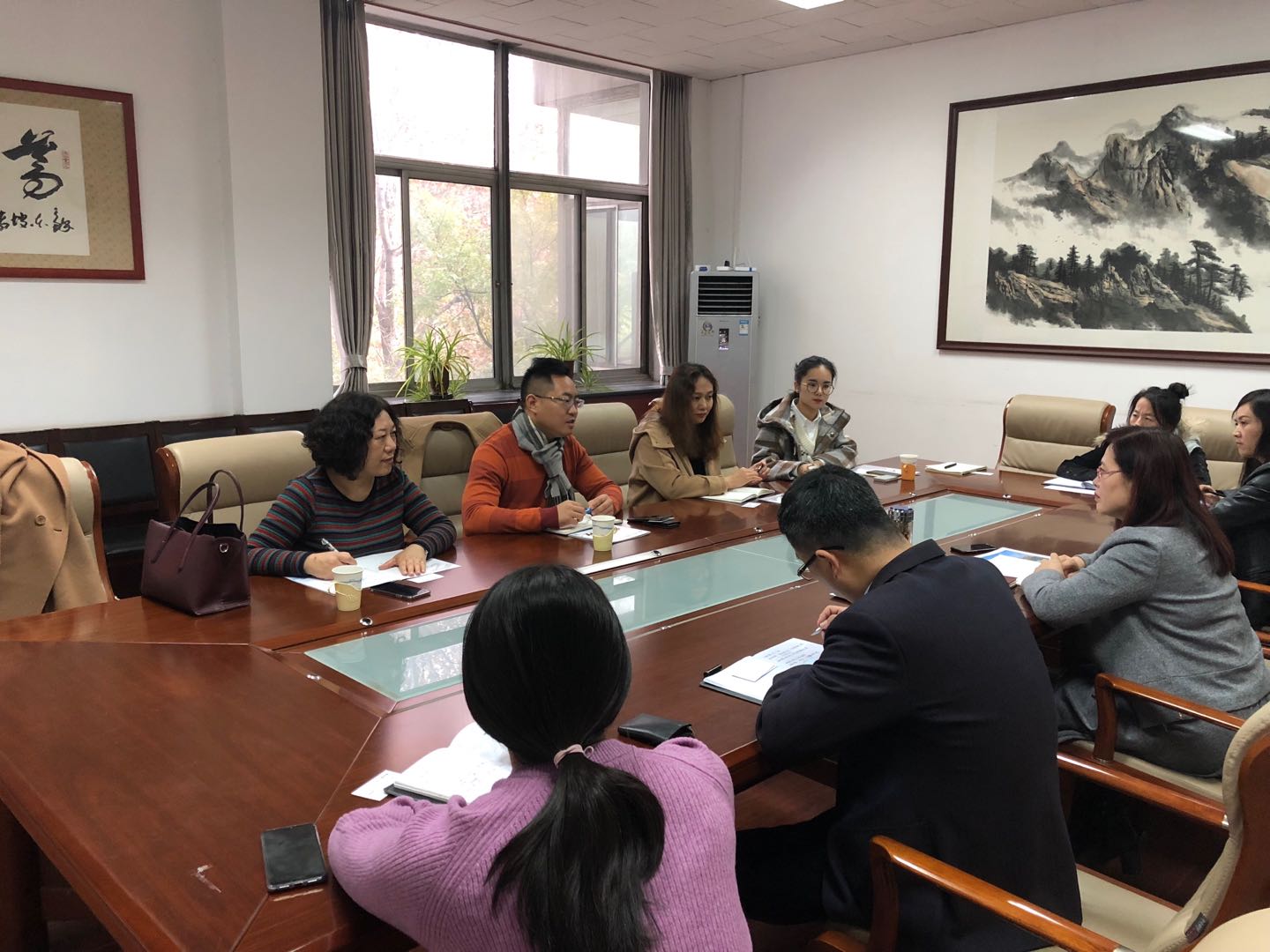 。院长张红凤会见了客人,学院办公室和辅导员老师参加了会谈。