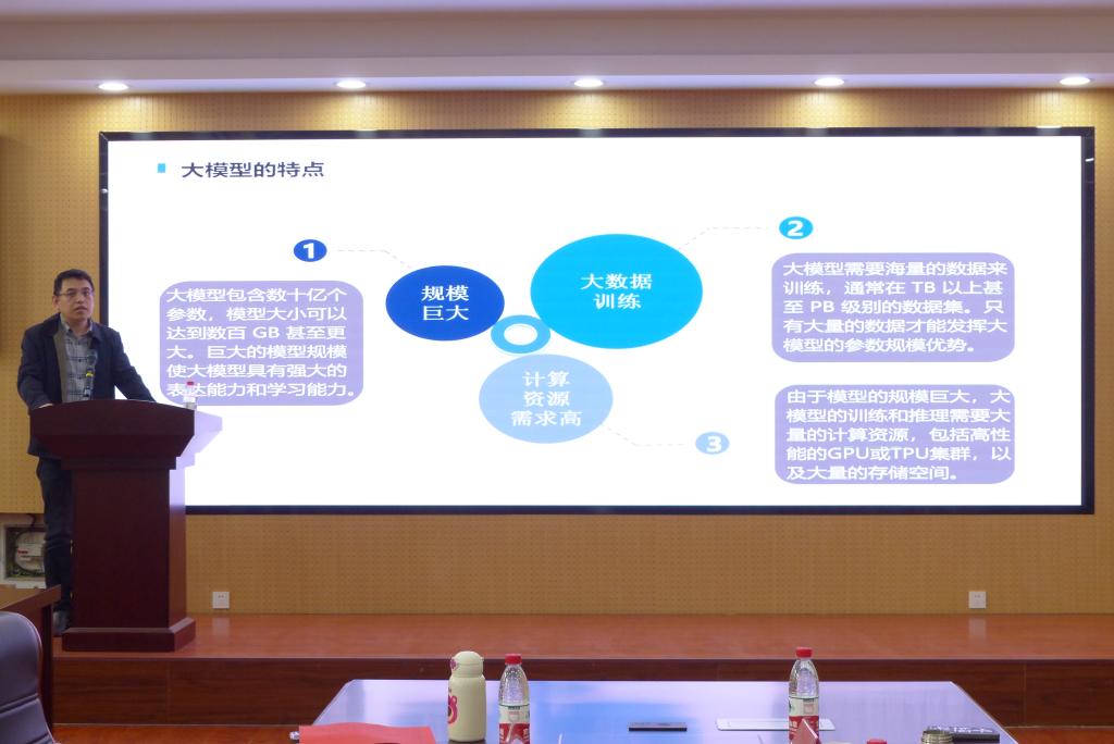 孙卫华具备多年科技金融从业经验,是业内资深技术专家。他从大模型概述、大模型训练、国产大模型及大模型应用等方面,对大模型进行了深入浅出的讲解。孙卫华指出,大模型作为具有大规模参数和复杂计算结构的深度学习模型,可以处理复杂的任务和数据,在未来社会有着越来越广阔的应用前景。他希望同学们可以增进对大模型的理解,应用大模型提高自己的学习能力和解决复杂问题的能力,为国家社会发展做出积极贡献。
