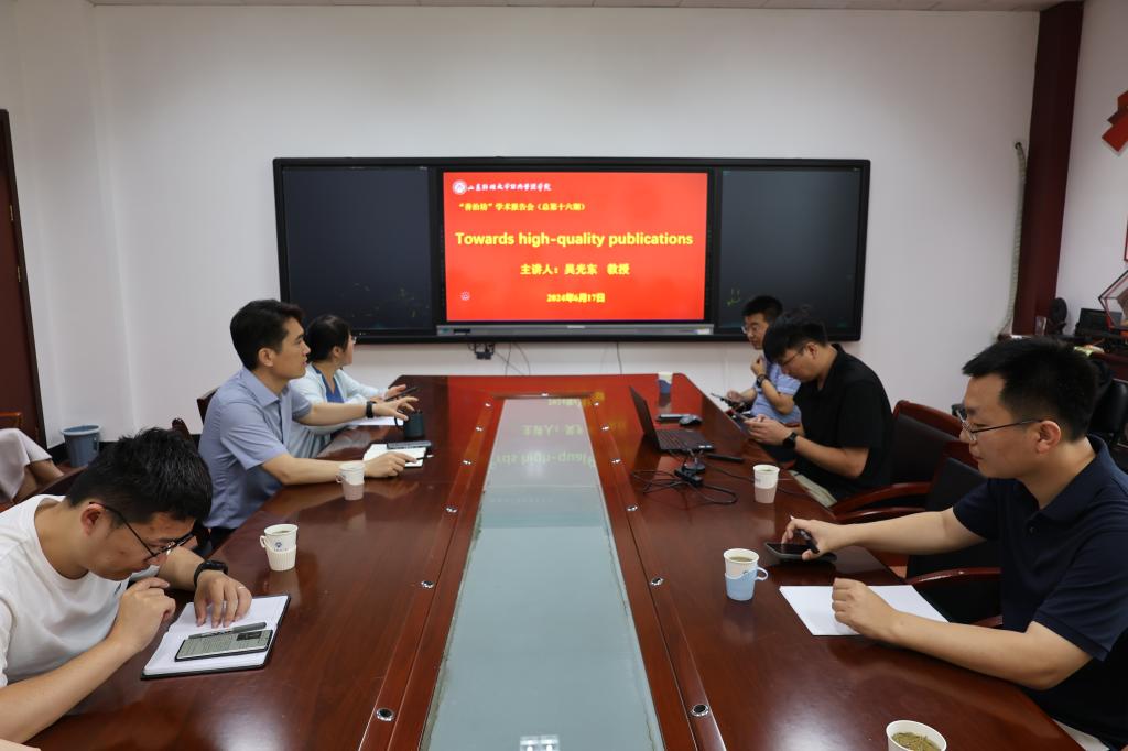 土地资源与城市发展管理系主任、国家级青年人才吴光东教授,他以“Towards high-quality publications”为主题,分享了其发表在公共管理顶级期刊的研究成果及相关经验,副院长曲衍波教授主持了报告会,城市与土地资源管理系教师、研究生以及山东大学管理学院孔庆山副教授参加了本次活动。