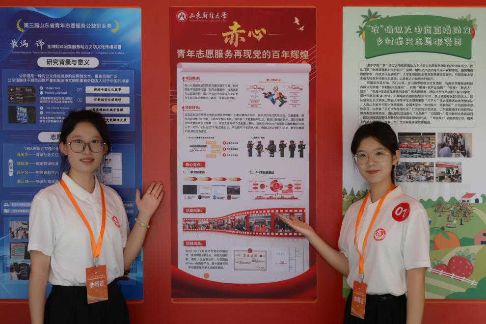 项目“赤心:百年辉煌党史的公益再现者”凭借其独特的数字化党史教育模式和可持续的公益创业路径,从众多项目中脱颖而出,荣膺山东省青年志愿服务公益创业赛金奖、山东省大学生创新大赛(2025)省级铜奖,为学院实践育人再添佳绩。