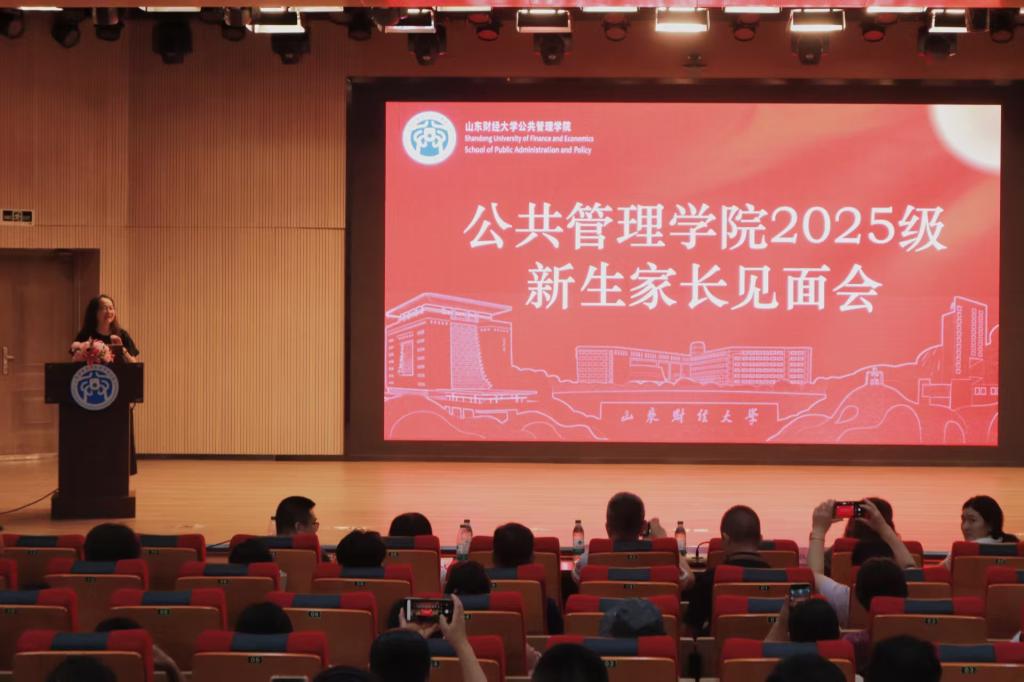 2025级新生家长见面会在章丘校区大学生活动中心报告厅举行。学院党委书记田远、院长贾海彦、副院长罗微、团委书记王超、2025级新生辅导员韩步彤以及2025级新生家长参加。会议由党委副书记许薇主持。