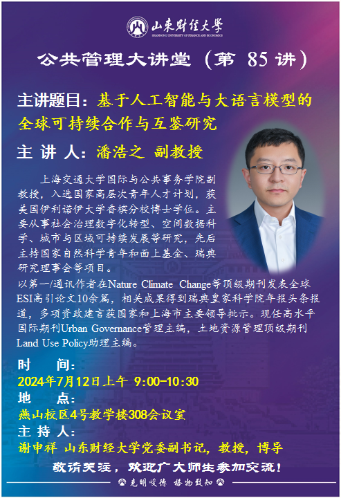 公共管理大讲堂(第85讲):基于人工智能与大语言模型的全球可持续合作与互鉴研究