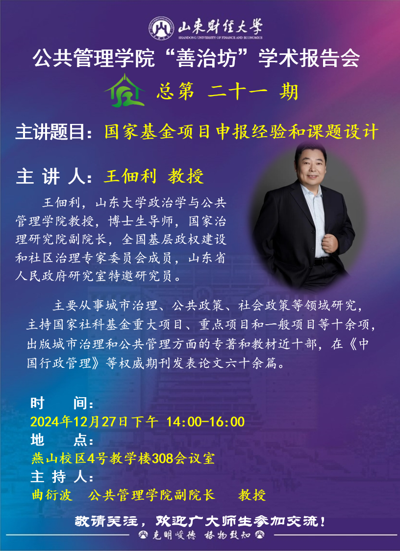 成人台小说 “善治坊”学术报告会第二十一期主讲题目:国家基金项目申报经验和课题设计