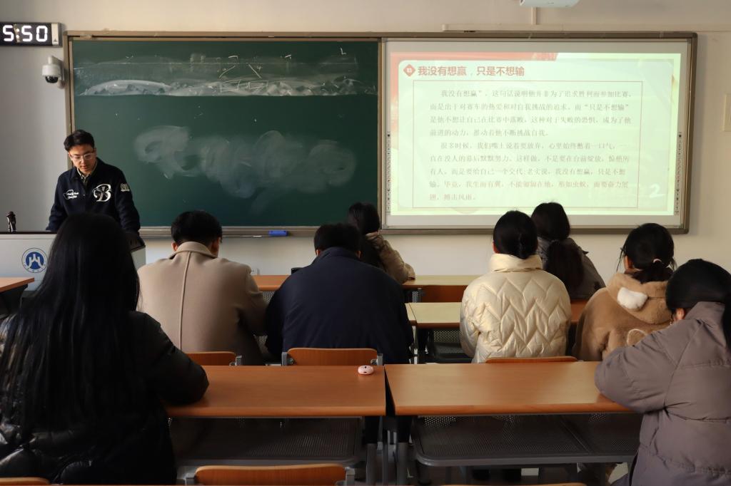 班会第一部分的主题为“人生就要热辣滚烫”。各班班长向各位同学讲述了电影主角杜乐莹毅然选择拳击这条与众不同的人生道路传奇并为之努力奋斗的故事,告知同学们人生不要被生活所定义、不该被标签所限制。他们希望同学们可以勇敢地做自己,不畏风险和考验,绽放属于自己的光芒。