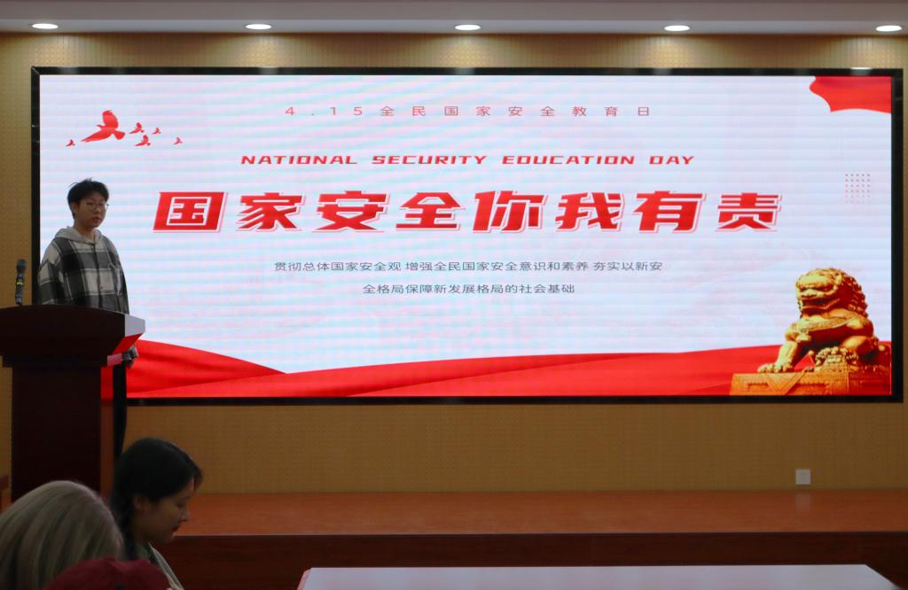 (通讯员 杨政利 摄影 王步霓)为深入贯彻落实总体国家安全观,推动国家安全宣传教育的开展,引导广大青年坚定不移地走中国特色国家安全道路,4月9日下午,在第九个全民国家安全日到来之际,学院于圣井校区8128会议室开展2024年总体国家安全观宣传教育主题活动。此次活动由学生会学习部组织,学习部干事王意舜主讲,2022、2023级各班班团参加。