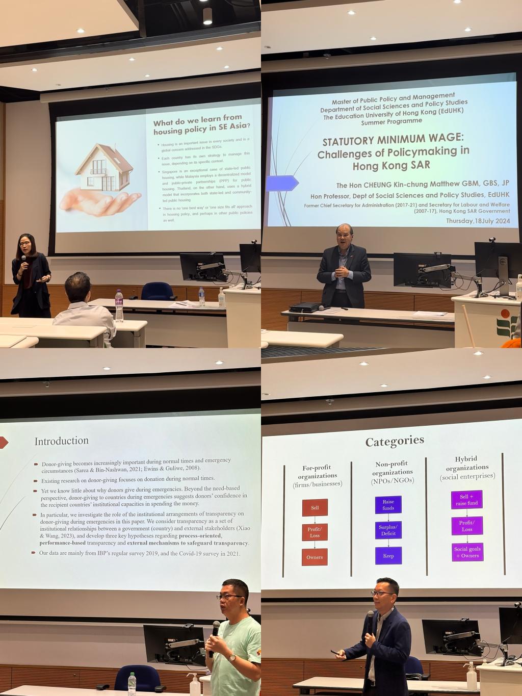在紧凑而富有成效的一周时间里,学院三名研究生参与了香港教育大学精心策划的研讨与讲座活动。讲座由来自香港教育大学、新加坡国立大学、香港大学、泰国清迈大学、香港特别行政区政务司等高校或机构的知名专家主讲,内容主要汇聚了香港公共住房政策、人工智能背景下劳动者最低工资问题、国际反腐问题、社会捐赠机制以及当前社会企业责任等前沿学术议题。讲座通过生动的案例讲解、系统的模式对比以及可视化数据的呈现进行深入浅出的分析,对相关问题进行细致解答。成人台小说