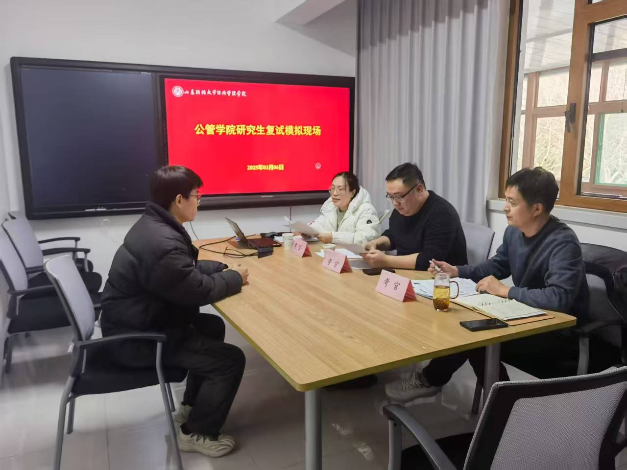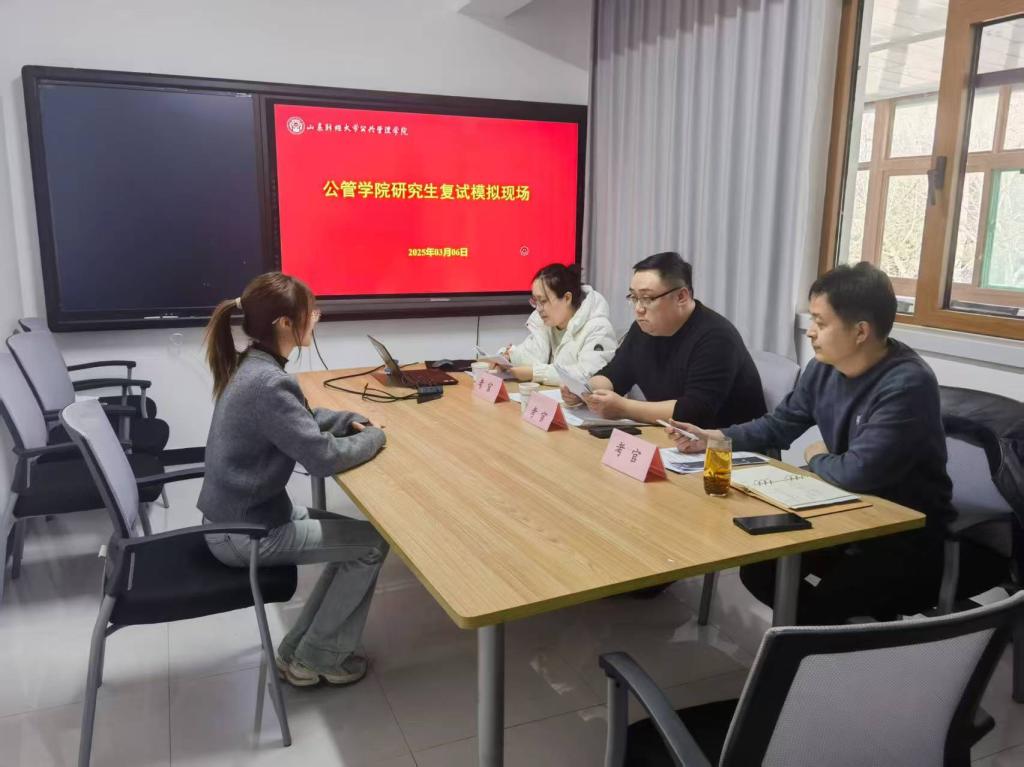 组织研究生进行复试模拟。本次活动在燕山校区6号楼218会议室举办,2025届部分学生参加。活动邀请面试指导教师李晓松、英语指导教师邱玉超,学工办主任张辉参加。