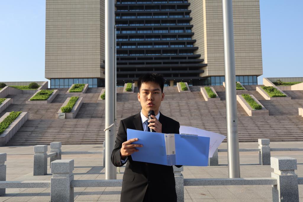 于圣井校区图书馆北侧升旗广场举行 “书香润泽心灵,阅读引领未来”—— 献礼世界读书日主题升旗仪式。仪式由学院团委书记、2024级辅导员王超主持。